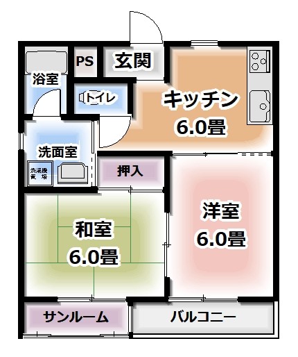 間取り 2DK(和室6.0・洋室6.0・DK6.0)